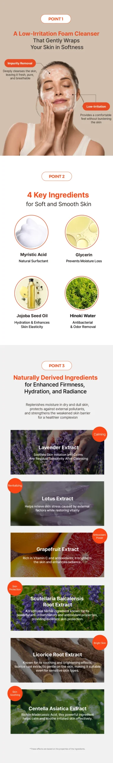 La espuma limpiadora cremosa, profunda y suave, crea una espuma rica y densa que elimina suavemente las impurezas de los poros, al tiempo que mantiene la hidrataciĂ³n. Enriquecida con agua de hinoki, aceite de semilla de jojoba y extracto de raĂz de regaliz, su fĂ³rmula hipoalergĂ©nica garantiza una limpieza calmante sin sensaciĂ³n de tirantez despuĂ©s del lavado. Diseñada para pieles sensibles, esta soluciĂ³n limpiadora de alta calidad transforma la limpieza diaria en el primer paso de una rutina de cuidado de la piel superior.